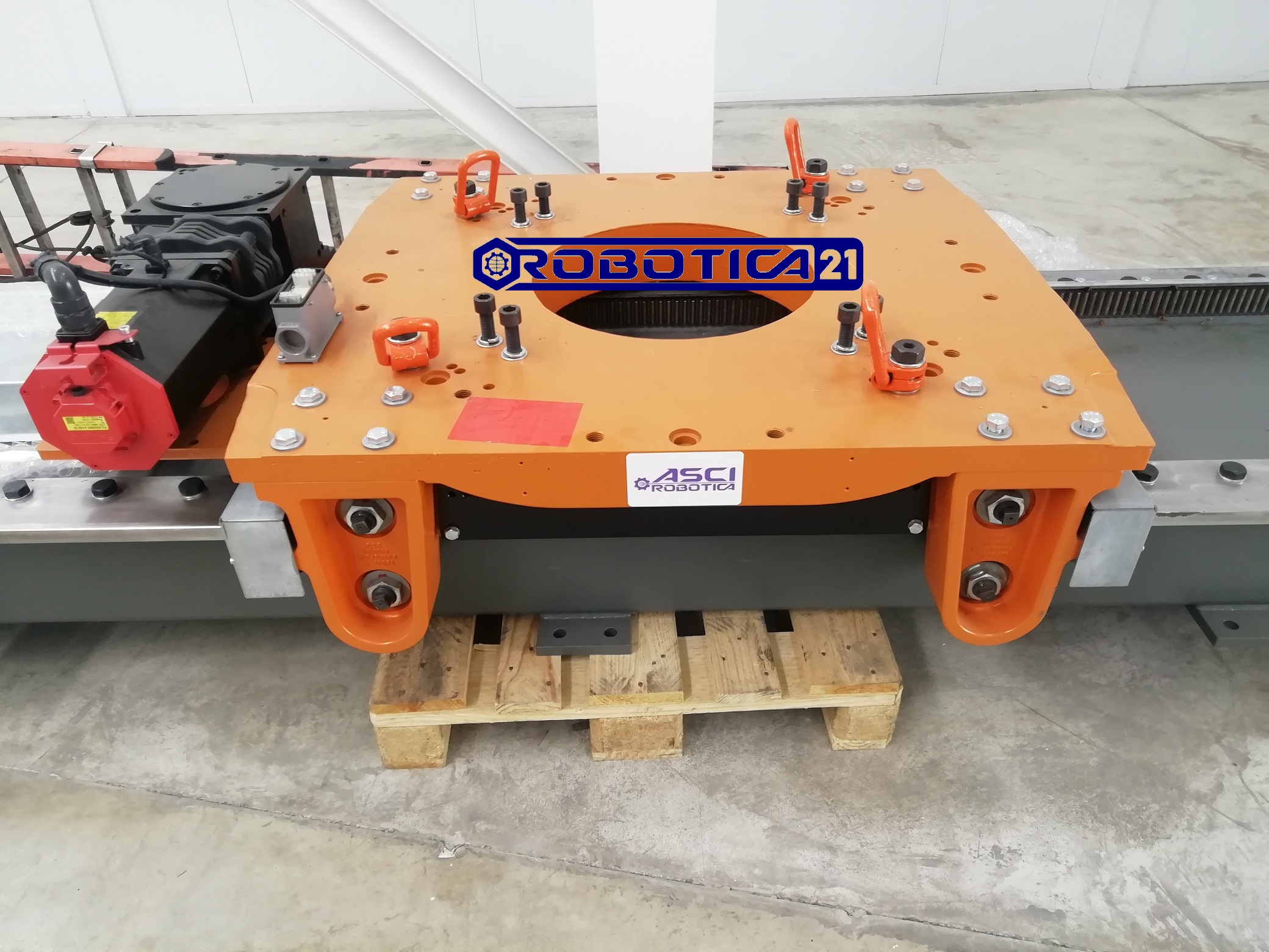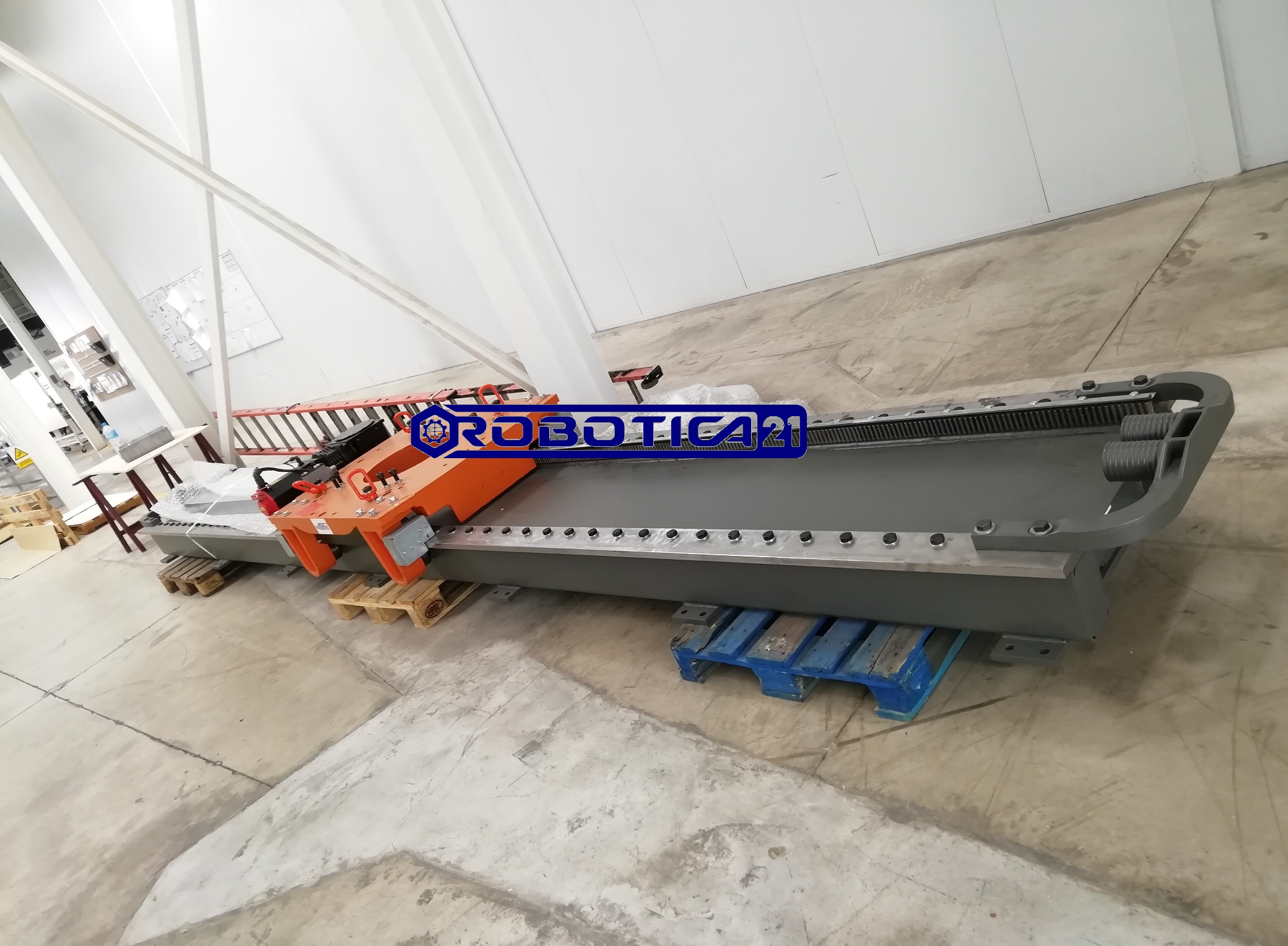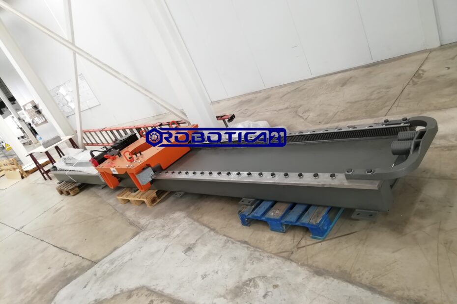 Alta rigidez de la unidad de rodadura con la máxima dinámica simultánea. Estructura base fabricada en tubo de acero, las guías están templadas y rectificadas. Accionamiento mediante piñón, reductora de precisión y cremallera. Incluyen el servo-motor, la cadena porta-cables, el kit de cables y el kit de nivelación.